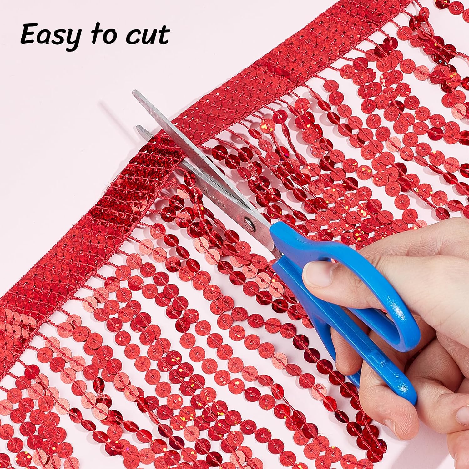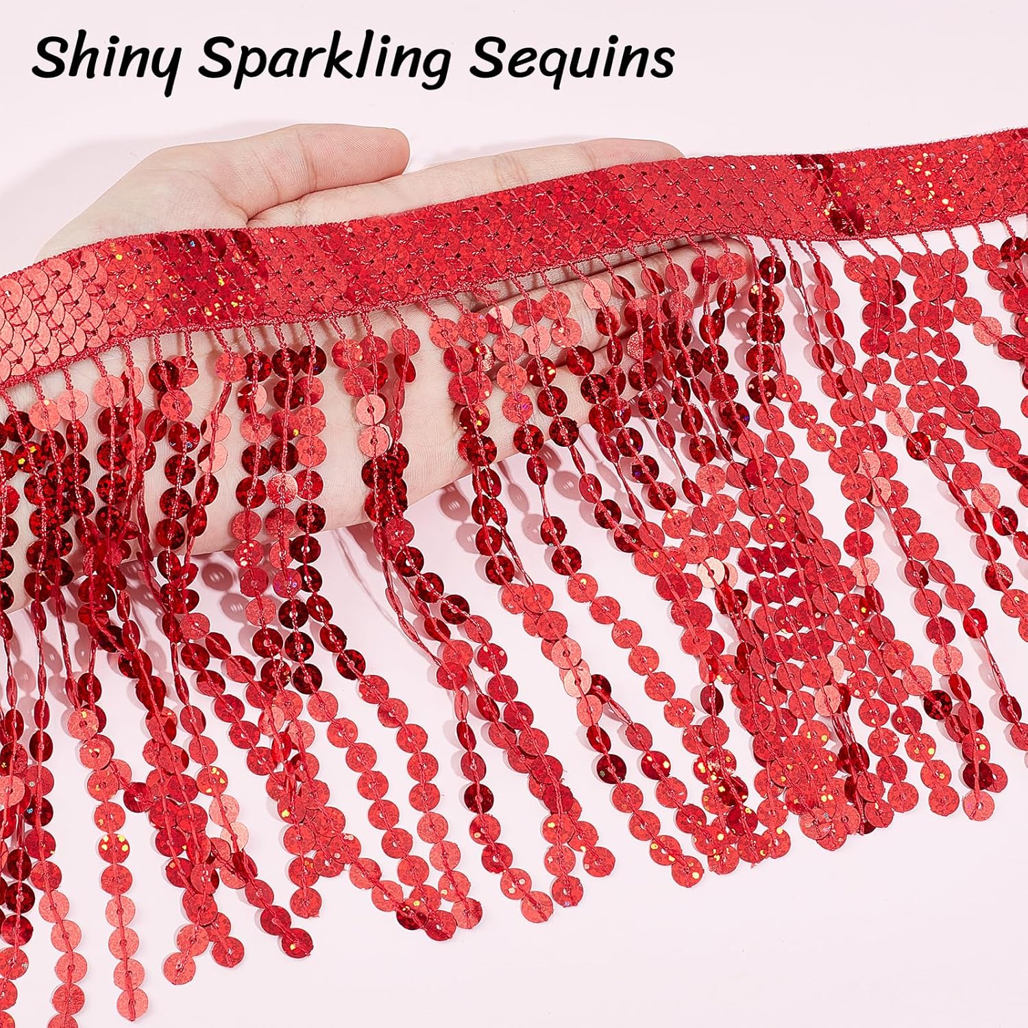 Features: 1. Adorned with multiple shiny sequins that glitter in both lights and sunlight, this fringe trim offers an eye-catching and elegant look. The fringe lace edges are securely fixed with thread, ensuring the neat tassels stay in place. It's lightweight, easy to carry, practical, and economical.2. Fringe tassel can be used in a variety of projects and DIY crafts.This sequin tassel decoration is versatile and can be used to decorate shirts,skirts,dancewear,pants, lace tablecloths,curtains,lamps,pillows,blankets,scarves,hats,headbands and shoes, etc.You can DIY all kinds of interesting accessories according to your imagination.Details: Name: Glitter Sequin Fringe TrimMaterial: SequinColor: redSize: 10 YardsPackage Includes: 1