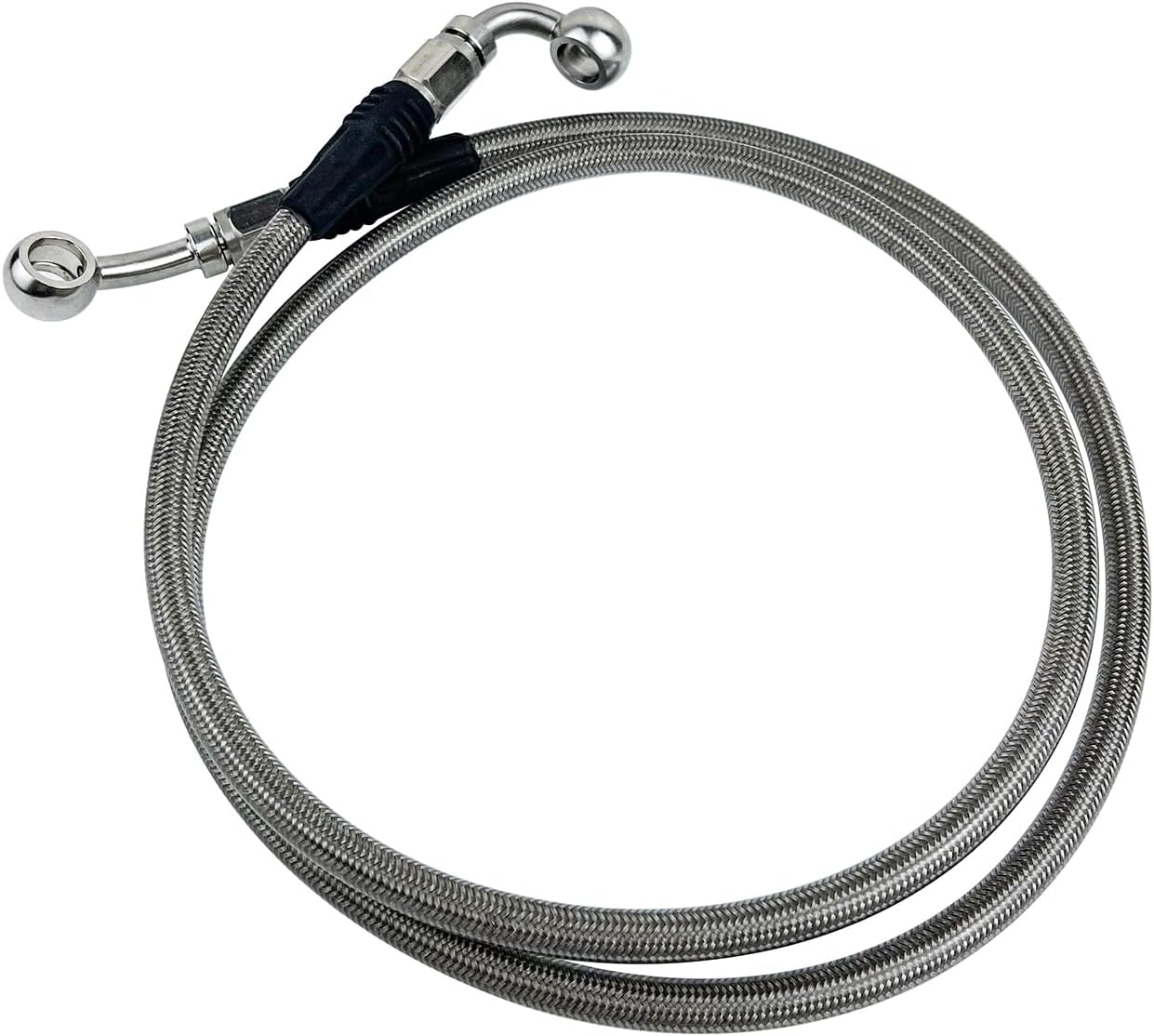 Fitment: Used on 12"-14" handlebar, applicable models: Compatible with Sportster Superlow XL883L 2014-2020. Compatible with Sportster 883 Iron XL883N 2009-2022. Compatible with Sportster Superlow 1200T XL1200T 2014-1017. Used on 10" handlebar, applicable models: Compatible with Sportster XL883 2004-2009. Compatible with Sportster 883 Iron XL883N 2009-2022. Compatible with Sportster Forty-Eight XL1200X 2010-2018. Replace Part Number: Could replace 46400-04, 45449-04C, 41800172. Package Included: 1 x 44 inches stainless steel Non-ABS hydraulic brake line. 1 x 30-degree banjo fitting. 1 x 90-degree banjo fitting. 2 x banjo Bolt. 4 x copper crush washers (No instructions). Specifications: Length: 44 inches. Outer Transparent Tube Material: PVC. Outer Tube Material: Polished Stainless Steel . Inner Tube Material: TeflonPTFE, Temperature resistance from -70°C to 260°C). Service: If you have any questions please feel free to let us know, we'll reply to you within 12 hours.