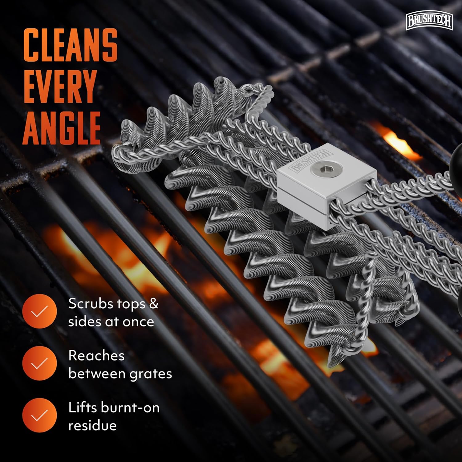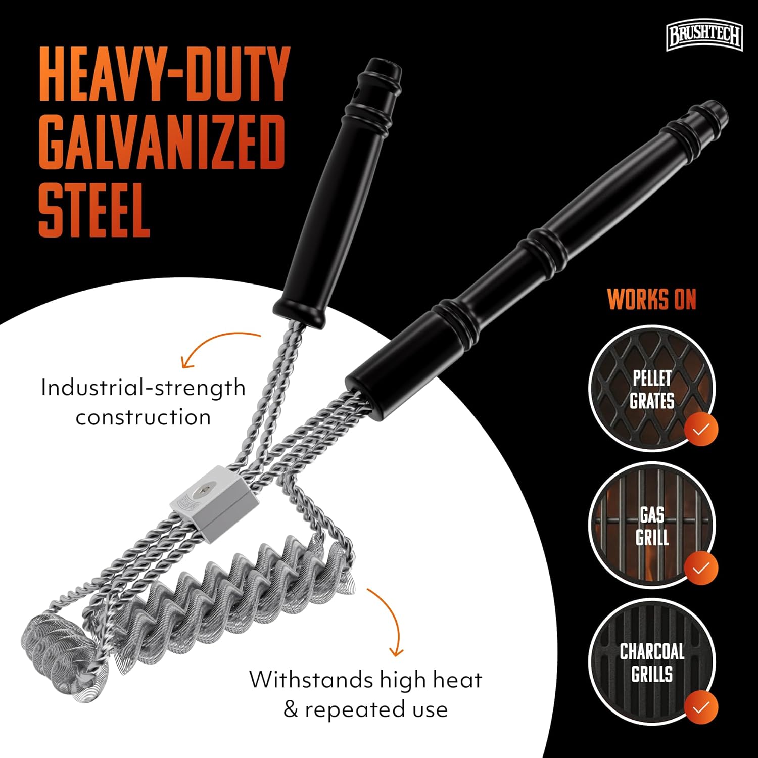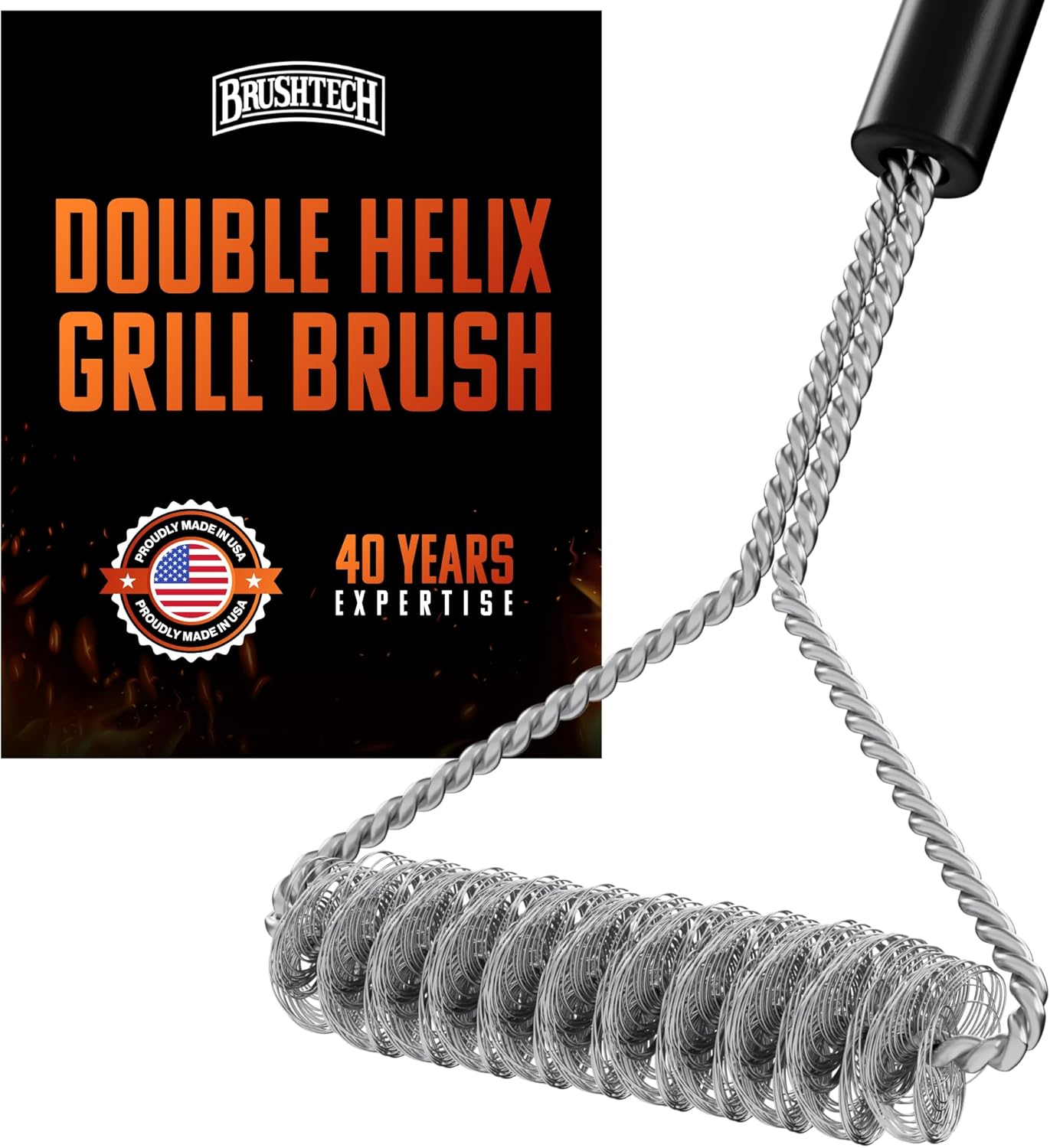 Take your grill maintenance to the next level with the Brushtech Tactical Safety Grill Brush, designed for power, durability, and efficiency. Featuring patented coil technology, this advanced BBQ grill brush includes three sets of twisted-in-wire stainless steel springs. These flexible yet strong coils bend and conform to your grill grates, ensuring a deep clean on both the tops and sides with minimal effort. Unlike traditional grill brushes, the tightly wound wire springs are engineered to stay intact, eliminating concerns about loose metal pieces while providing a safe and effective cleaning experience. Whether you're dealing with stubborn, burnt-on residue or thick layers of grease, the large handle is designed for maximum control, allowing you to apply strong downward force for powerful scrubbing action. Constructed from heavy-gauge stainless steel, this grill cleaning brush is built to withstand intense use, making it an essential tool for grill masters who demand durability. It effectively cleans between grates, ensuring that no stubborn residue is left behind. Compatible with gas, charcoal, and pellet grills, it’s a must-have for maintaining a clean and well-performing cooking surface. Proudly made in the USA, the Brushtech Tactical Safety BBQ grill brush combines expert craftsmanship with industrial-strength materials. Keep your grill in top condition with a tool designed to tackle even the toughest messes with ease.