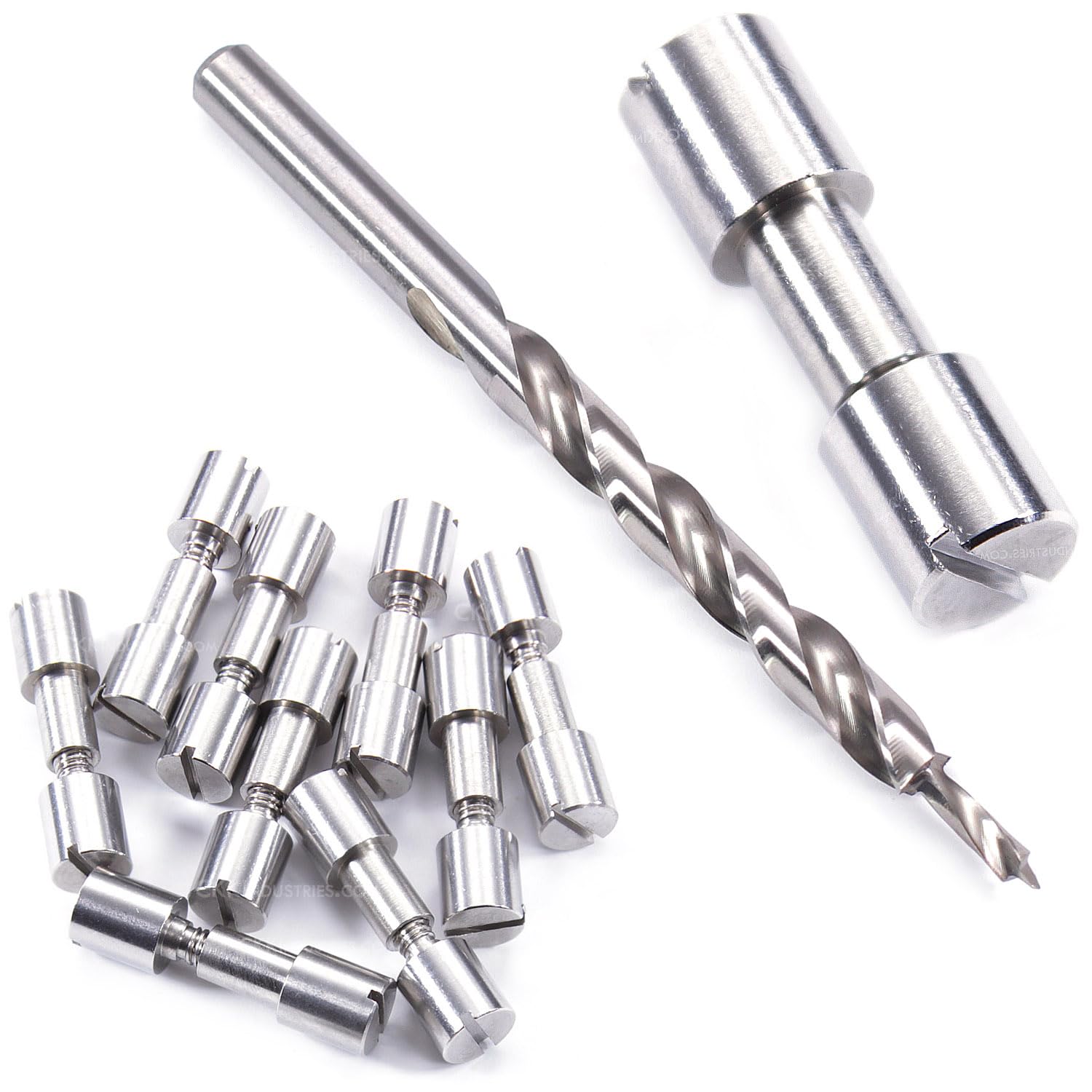 This is a Corby Bolt Fastener & step drill combo kit. It features 10 Corby Bolt Fasteners in the material and size specified below with the corresponding precision step drill for installation.Corby Bolts are used for knife handle fasteners. With this design, you will create a step hole in your handle material that is slightly larger than the shank of the fastener. The two-part assembly allows for you to pass the shank precisely through your knife tang hole and handle material, allowing the larger radius of the Corby Bolt heads to create a pinch point on both sides of the handle material where it can then be tightened down to a secure hold. Once the bolt has been tightened, it can be sanded to a flush finish with the handle surface. This will result in a smooth, pin-like visual effect on the final knife handle. When used with epoxy and/or thread-locker adhesive, they will create a permanent handle bond.Specifications Corby Bolt Fastener Head Diameter = .250 in. (ea.) Head Length = .300 in. (ea.) Shank Diameter = .187 in. Shank Length = .350 in. Overall Length (min) = (1.0 in) Overall Length (max) = (1.2 in) Thread = US 6-40 Driver = Slot Material = BrassStep Drill Designed for: Handle Fasteners Bit Dimensions = (0.250 step x 0.186 pilot) Inch Material = HSS - High-Speed SteelSold As: (10) Threaded Posts + (10) Threaded Heads + (1) Step Drill
