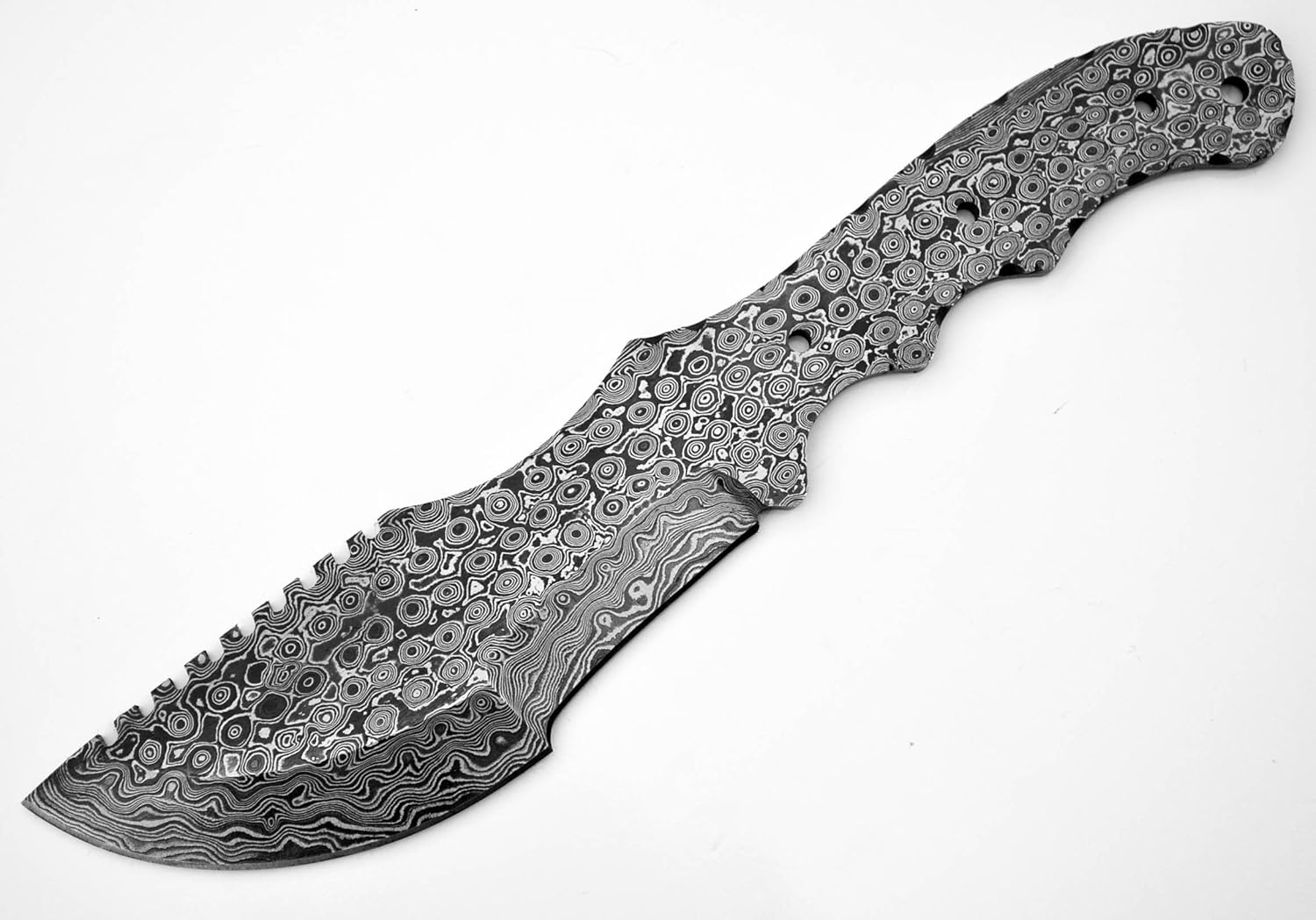 This Damascus Tracker hunting knife blade blank is a masterpiece of craftsmanship, forged from high-quality Damascus steel. The intricate patterns on the blade create a mesmerizing visual effect, with layers of different steel alloys forming captivating patterns. Designed for knifemakers and hobbyists, this blade blank offers a robust foundation to craft a stunning and durable hunting knife. With its curved shape and sturdy construction, it promises exceptional edge retention and strength. Unlock your creativity and transform this exquisite blade into a functional work of art that will accompany you on thrilling outdoor adventures. Please note that this is a blade blank and requires additional components and assembly to create a complete knife.