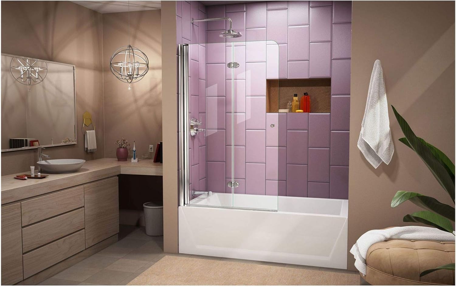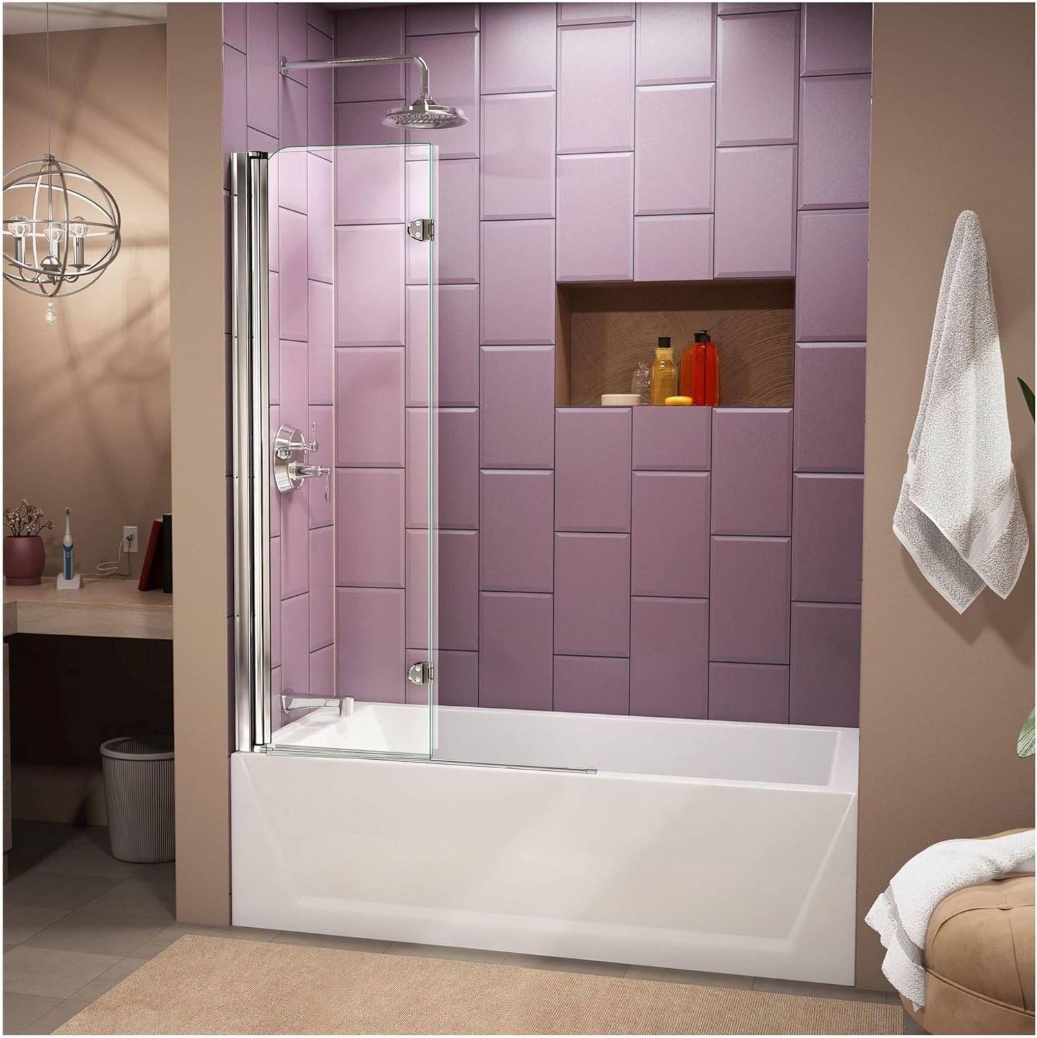 Product Description The DreamLine Aqua Fold is a Bi-Fold shower or tub screen with a modern design and a European flair. The Aqua Fold features a trackless style and a continuous self-centering pivot to add style and create an open, inviting shower space. The DreamLine Aqua Fold model will transform your bathroom with charm and style to match its functionality. Tub Screen is suitable for installation on any straight (not curved) bathtub. Professional installation recommended. Limited Lifetime Manufacturer Warranty From the Manufacturer The DreamLine AquaFold is a Bi-Fold shower or tub screen that has a modern design with a European flare. The AquaFold features a trackless style and a continuous self-centering pivot that will add style and create an open, inviting shower space. The DreamLine AquaFold model will transform your bathroom with charm and style to match its functionality.