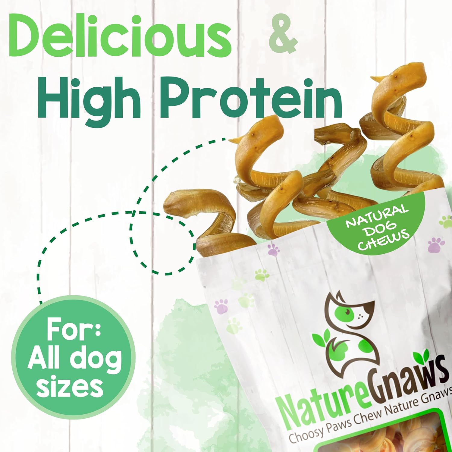 Made with natural premium quality beef pizzle, our Beef Bully Stick Springs are ideal to keep your beloved pup busy and calm. These natural chews are perfect for teething puppies, aggressive chewers, small and medium dogs. Nature Gnaws curly Bully Sticks are low-odor, grain-free and gluten-free, making them the perfect natural alternative to rawhide bones and manufactured dental chews. Savory snack, the natural act of chewing helps reduce plaque and tartar for cleaner teeth and fresher breath. Promoting overall good dental hygiene, these bully chews are an excellent choice for your pet. Our Beef Chews have a savory thick texture that is the perfect reward to occupy and entertain. Your dog will love the natural scent and tasty beef flavor of our chews. As a family-run business, we are dedicated to providing 100% natural dog chews, bones and treats made with responsibly sourced ingredients to ensure they are the best simple, natural, and delicious products for your beloved pups.