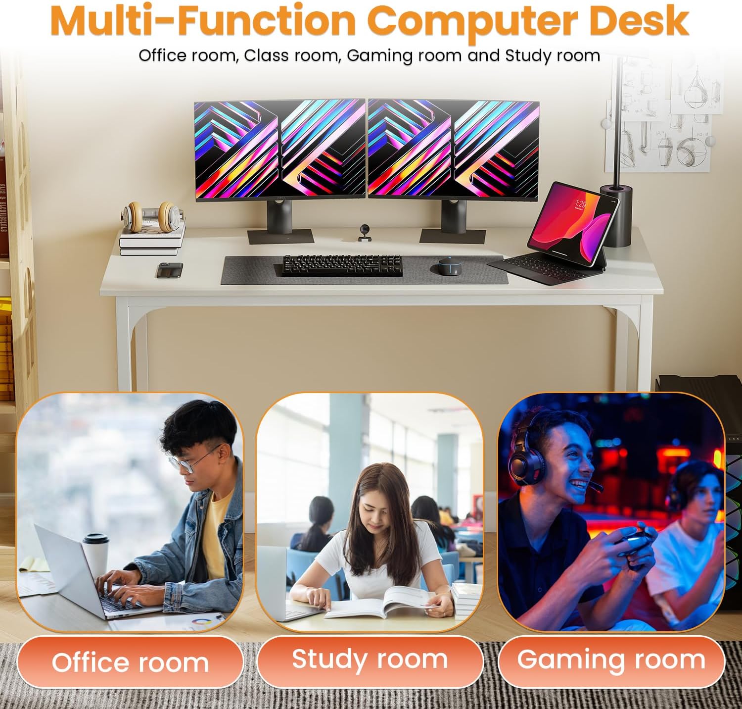 Upgrade your workspace with this sleek and functional computer desk, thoughtfully designed to combine durability, modern style, and everyday versatility. Whether you're working from home, studying, gaming, or crafting, this desk offers a reliable surface in a space-efficient footprint, making it ideal for apartments, bedrooms, dorm rooms, and home offices. Constructed with a reinforced steel frame and a high-quality, scratch-resistant desktop, it ensures long-lasting stability and resistance to daily wear and tear. The anti-slip feet and triangular structural support provide wobble-free use on various floor types. Its water-resistant surface makes cleaning effortless, helping you maintain a tidy and professional environment with ease. This multi-purpose desk can serve as a computer table, writing desk, study station, or gaming surface, offering functionality for all your daily needs. Designed for quick and easy assembly, it’s a dependable choice for anyone looking to optimize their setup without sacrificing style. Available in multiple sizes and colors to complement different room styles and layout requirements.