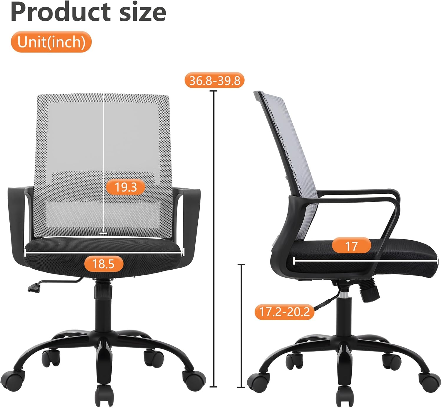 | Item Type Name | Ergonomic Mesh Chair Mid-Back Home Office Swivel Chair Modern Desk Chair With Wheels Armrests Lumbar Support,Grey |