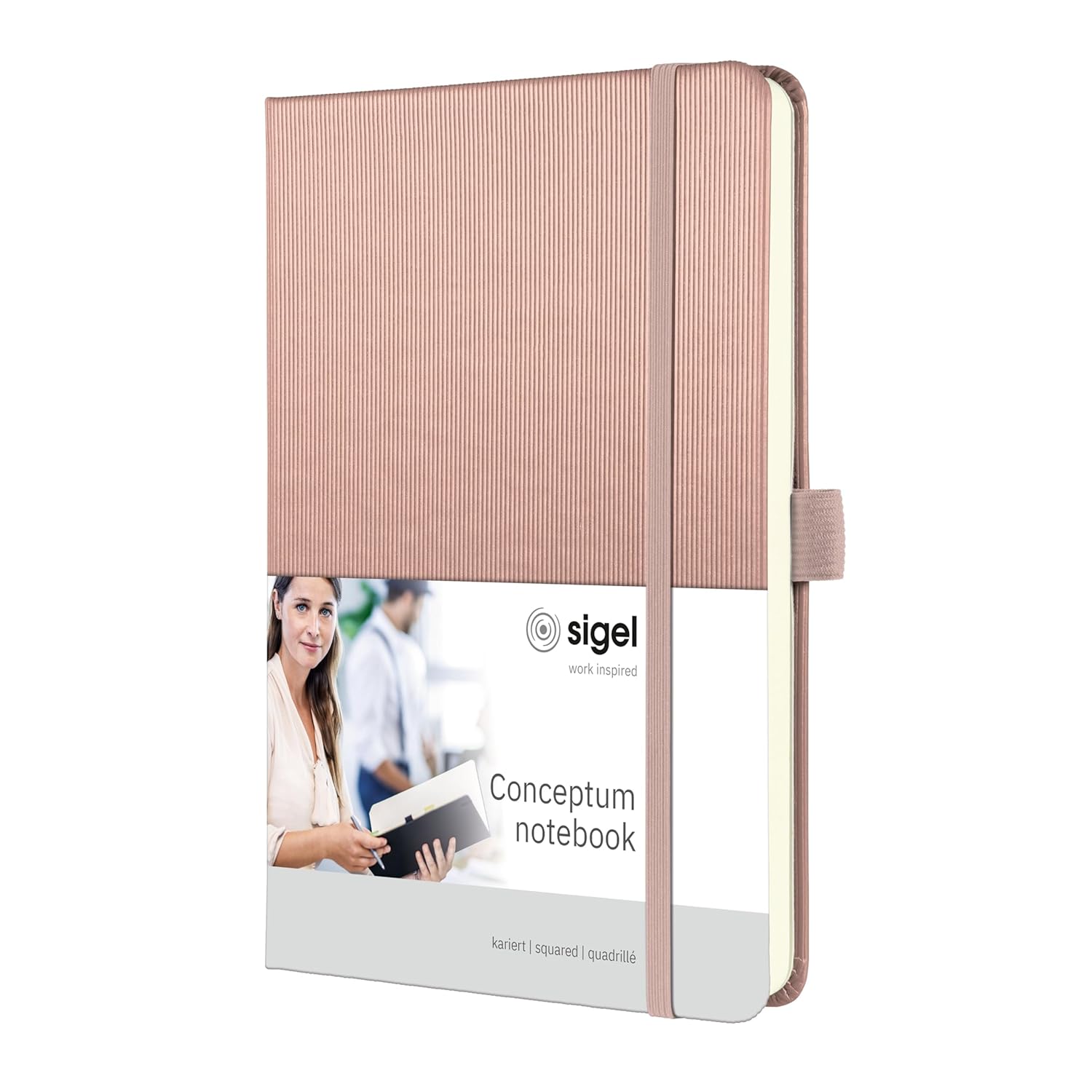 Discover the best notebook you've ever had. The surface with the grooved softwave structure ensures a pleasant feel and makes the Conceptum notebook an elegant companion for business as well as private. Notes efficiently organised and always at hand - with the stylish notebook squared in the format approx. A5 (14.8 x 21.3 cm) with 194 pages (20 sheets of which are perforated). The sturdy hard cover in rose metallic guarantees stability when writing and the elastic band closure keeps everything safe. The many practical functions will convince you: e.g. B. you always have a matching pen at hand with the stretchy pen loop, you can easily pass notes thanks to perforated note sheets. Organize your entries clearly by transferring the page numbering to the table of contents. Absolutely high quality in quality and design and therefore extremely durable - this notebook will delight you. Read more