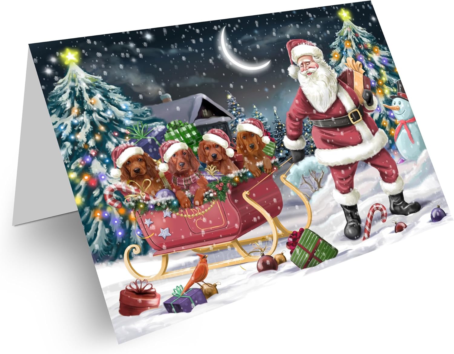 Introducing Our Dog Greeting Cards with Envelopes!Celebrate the holiday season with our exquisite Dog Christmas Cards. Crafted on premium, eco-friendly cardstock, these cards showcase vibrant colors and intricate details that truly make them stand out. Measuring at 5 x 7 inches for the Christmas greeting cards and 5.5 x 4 inches for the note cards, each set offers a variety of designs to suit all your festive needs.Inside the cards are blank, providing you with the perfect canvas to pen down your own personalized messages of gratitude and warm heartfelt sentiments to be sent out with love. Each card is accompanied by small envelopes, ensuring your holiday wishes are delivered in style.Key Features:• Stylish, vibrant designs that capture the spirit of the season.• Blank inside so you can write purposeful and meaningful messages. • Printed on high-quality paper stock for a luxurious feel.• Each Christmas card is paired with an envelope for a complete gifting experience.• Personalize and customize your messages anytime to add that extra personal touch.• Smooth, flawless surfaces inside every card for easy writing.• Suitable for a wide range of occasions, including Christmas, Mother’s Day, Father’s Day, and more.We take great pride in our dog-themed Christmas cards in bulk, and we're confident you'll love them just as much. However, if for any reason you're not completely satisfied with your purchase, please do not hesitate to contact us. We offer a full refund or replacement, ensuring your satisfaction is our top priority.Bring a touch of canine charm to your holiday cards greetings, and let your loved ones know you're thinking of them with our extraordinary Dog Greeting Cards.