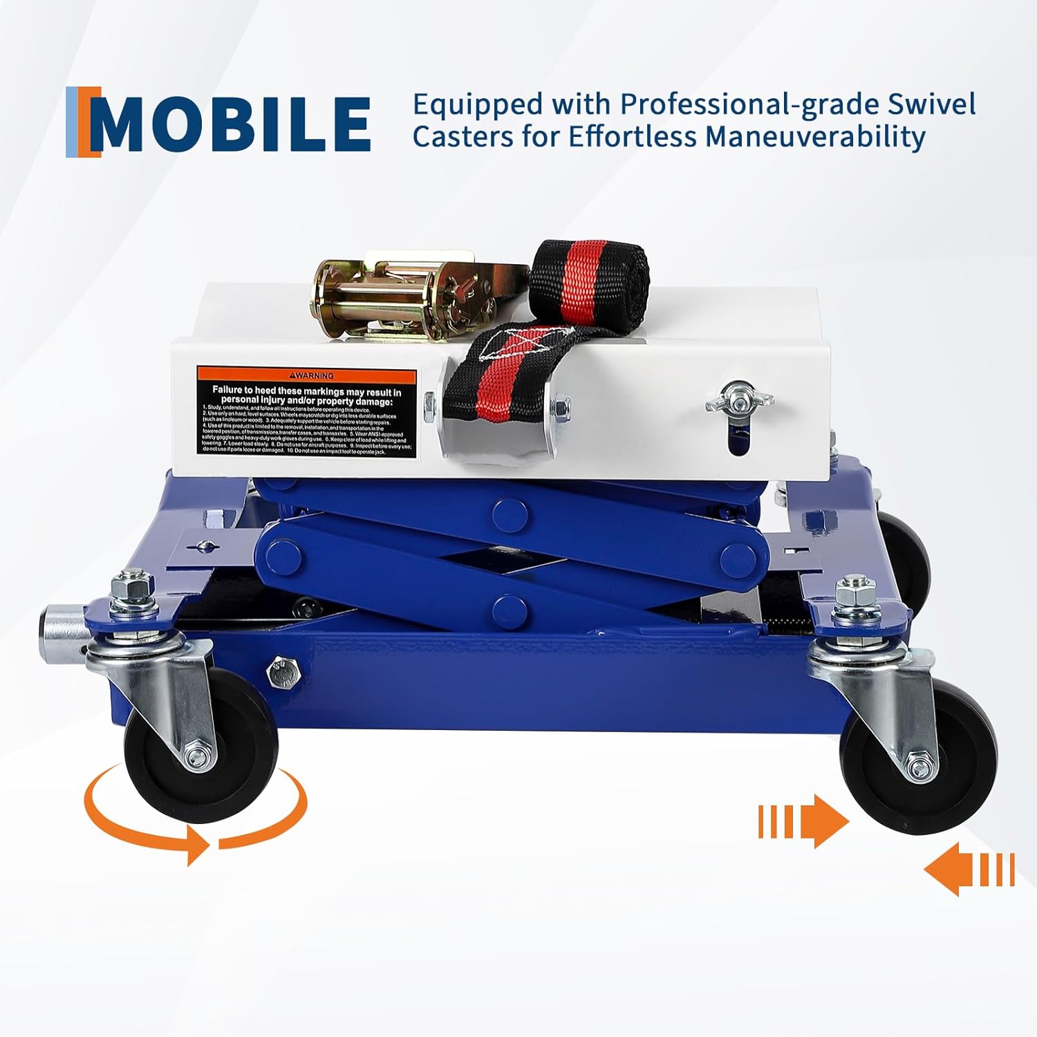 Introducing the 450 Lbs Capacity Low Profile Transmission Jack, your go-to solution for safe, efficient transmission removal and installation. Designed with a low profile, this robust jack fits effortlessly under low-clearance vehicles like compact cars and trucks, ensuring easy access without risking vehicle damage. It features strong safety straps and a wide, stable platform, securely holding your transmission in place during maintenance and eliminating slips for a worry-free experience. Constructed from durable steel, it supports up to 450 lbs, making it suitable for both home garages and professional repair shops. Its adjustable lift height ranges from 7 to 23 inches, allowing for precise alignment and smooth repairs across various vehicle sizes. This jack is flexible enough to handle both smaller vehicles and larger trucks with ease. With four 360-degree swivel wheels, it moves effortlessly around your workspace, enhancing mobility and convenience. In addition to transmission work, this versatile jack is ideal for SUVs, ATVs, and other auto repair tasks. Key Features: - Low profile design for easy access under low-clearance vehicles - Secure safety straps and wide platform for stable transmission support - Heavy-duty 450 lb capacity made from durable steel - Adjustable lift height from 7 to 23 inches for versatile use - Smooth mobility with four 360-degree swivel wheels for effortless movement. Enhance your auto repair toolkit with this reliable transmission jack that combines safety, strength, and versatility for all your lifting needs.