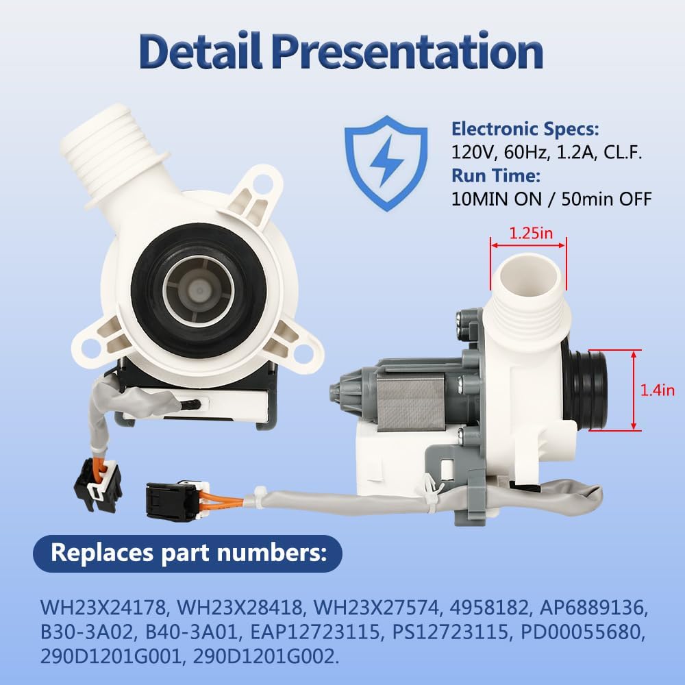 | Included Components | 1 x WH23X24178 Washer Drain Pump |