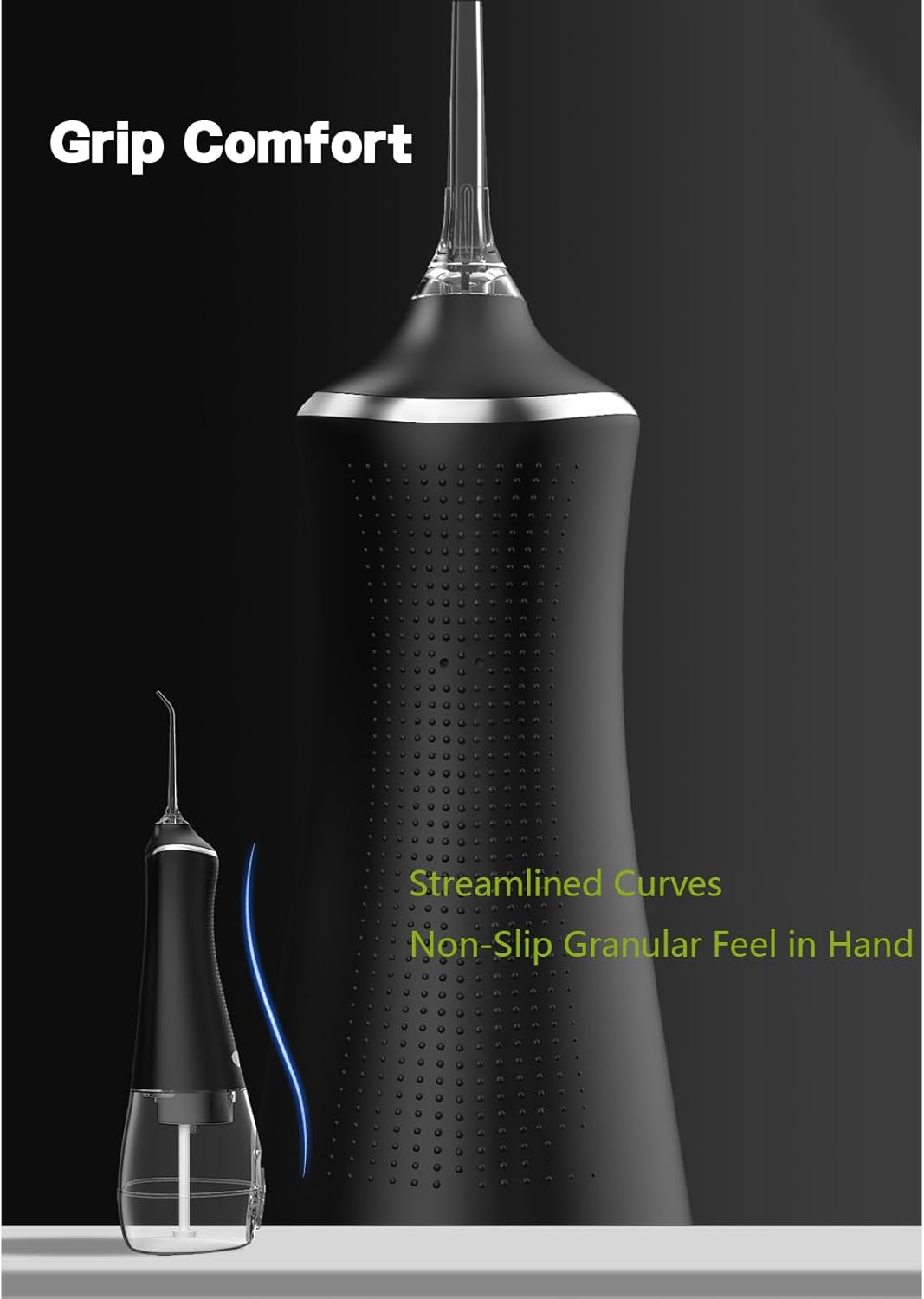 Product Name: Portable Tooth Flosser Size: 78*78*225mm Rated voltage: 5V Rated power: 5W Charging time: 4-5H Rated water pressure: 40-130PSI Operating mode: 3 modes Waterproof rating: IPX6 Battery capacity: 1500mAh Water tank capacity: 300ml Pulse frequency: 1600-1800 times/min